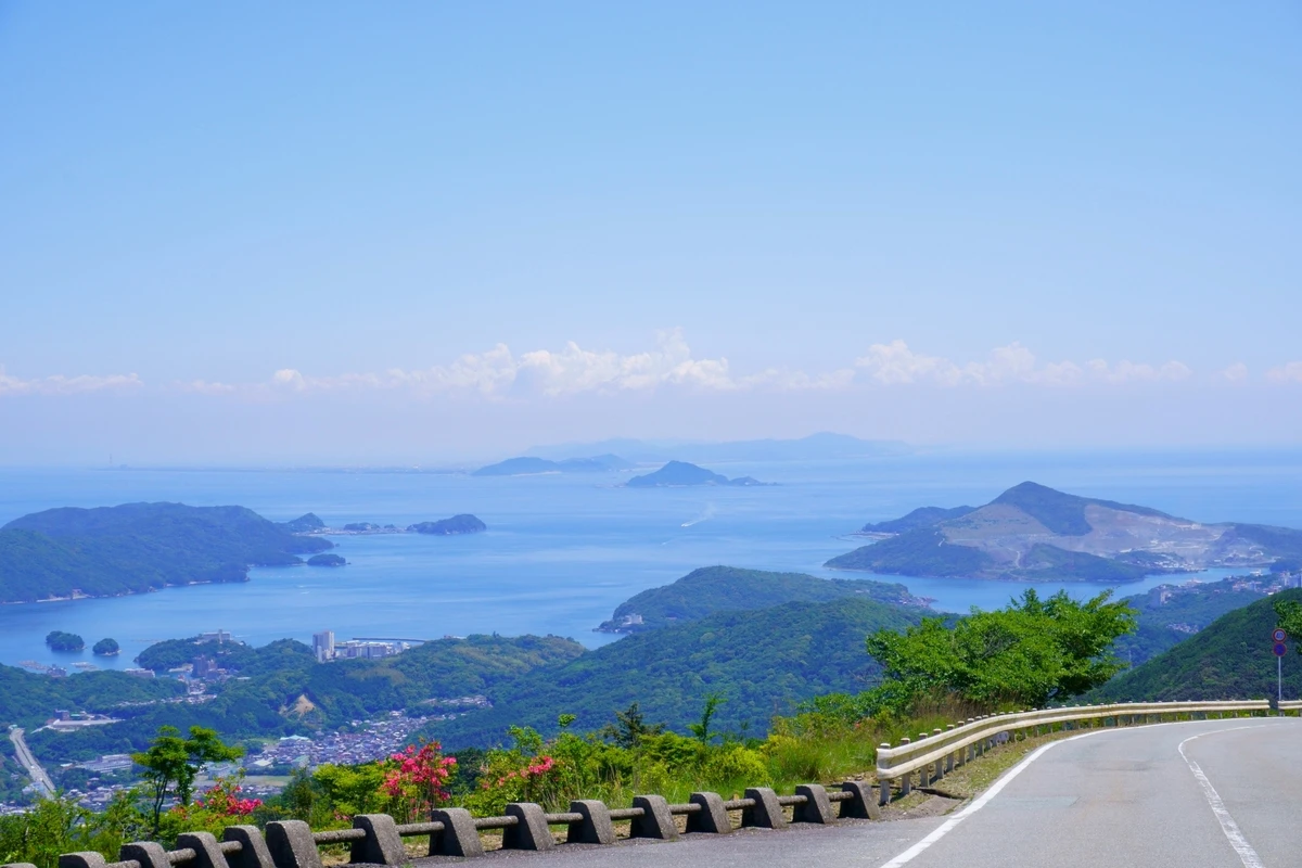 まず立ち寄ったのが、有田町を一望できるビュースポット「みかんの丘」。名前の通り、みかん畑に囲まれたくねくね道が続く、リズムの良いワインディングロードです。