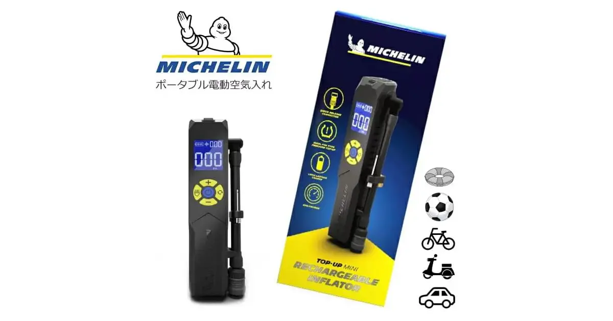 • 【Michelin:ミシュラン】充電式コードレスタイヤ空気入れ