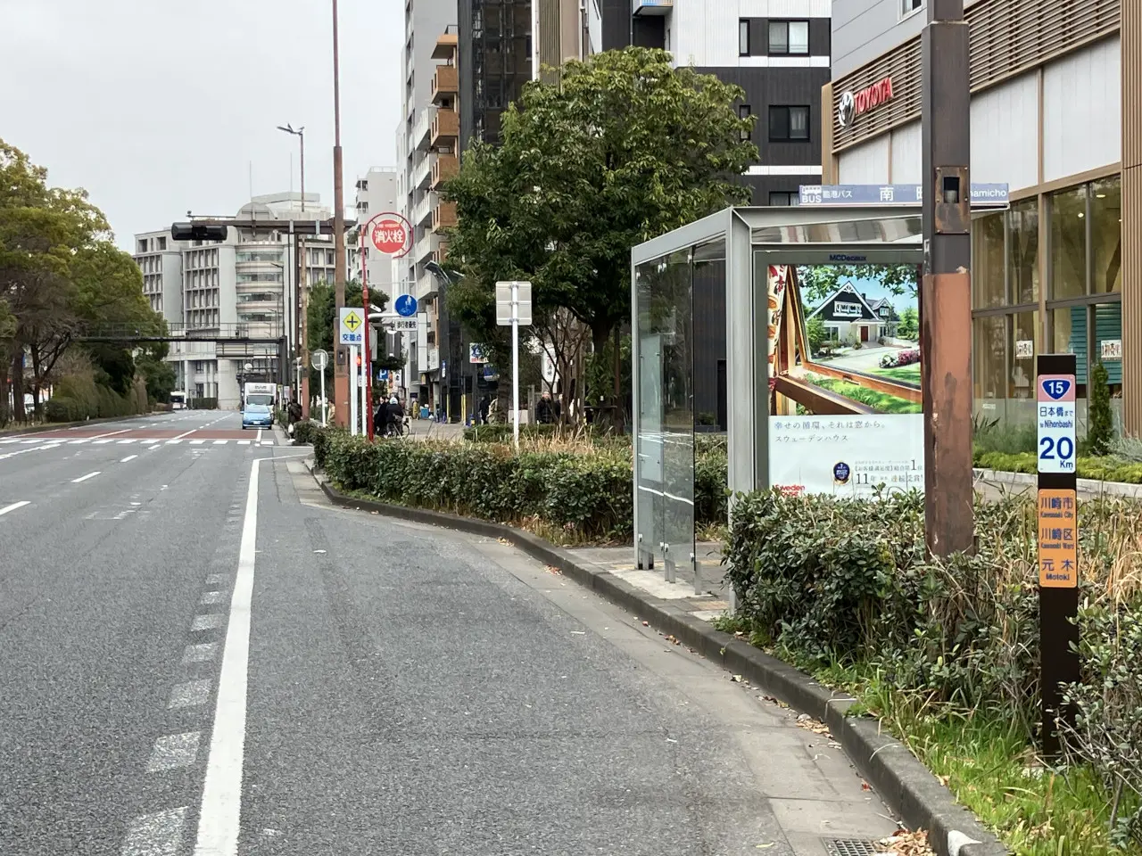 六郷橋を超えてすぐ、川崎駅東側の臨海バス南町バス停辺りが20km地点。ここからさらにしばらく行くと最初の中継地点「鶴見中継所」があります。