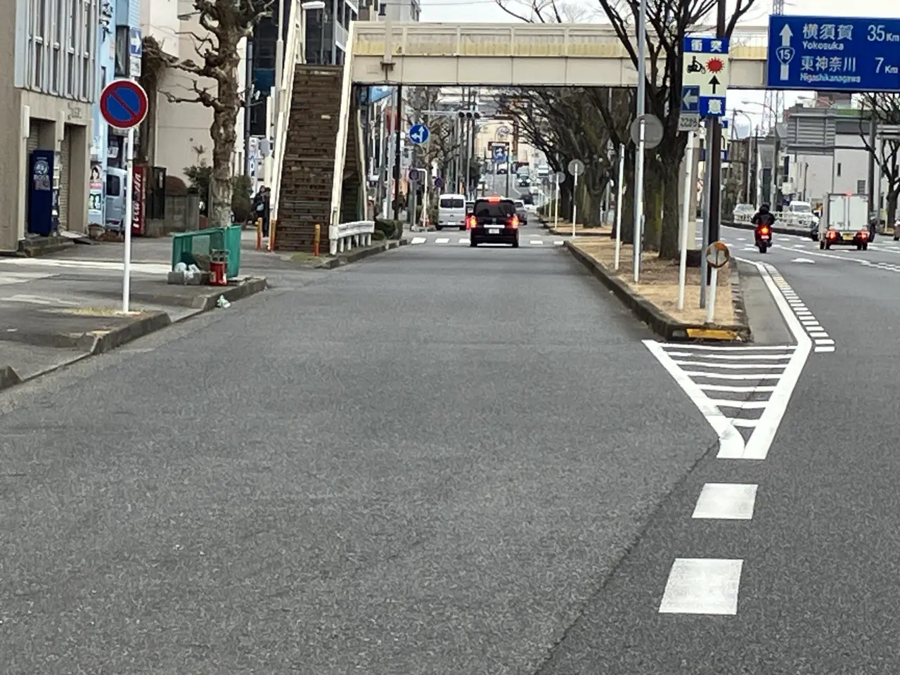 人が居ない&駐車車両が両側にビッシリで全然印象が違うけど、ここが箱根駅伝のスタート地点です。
