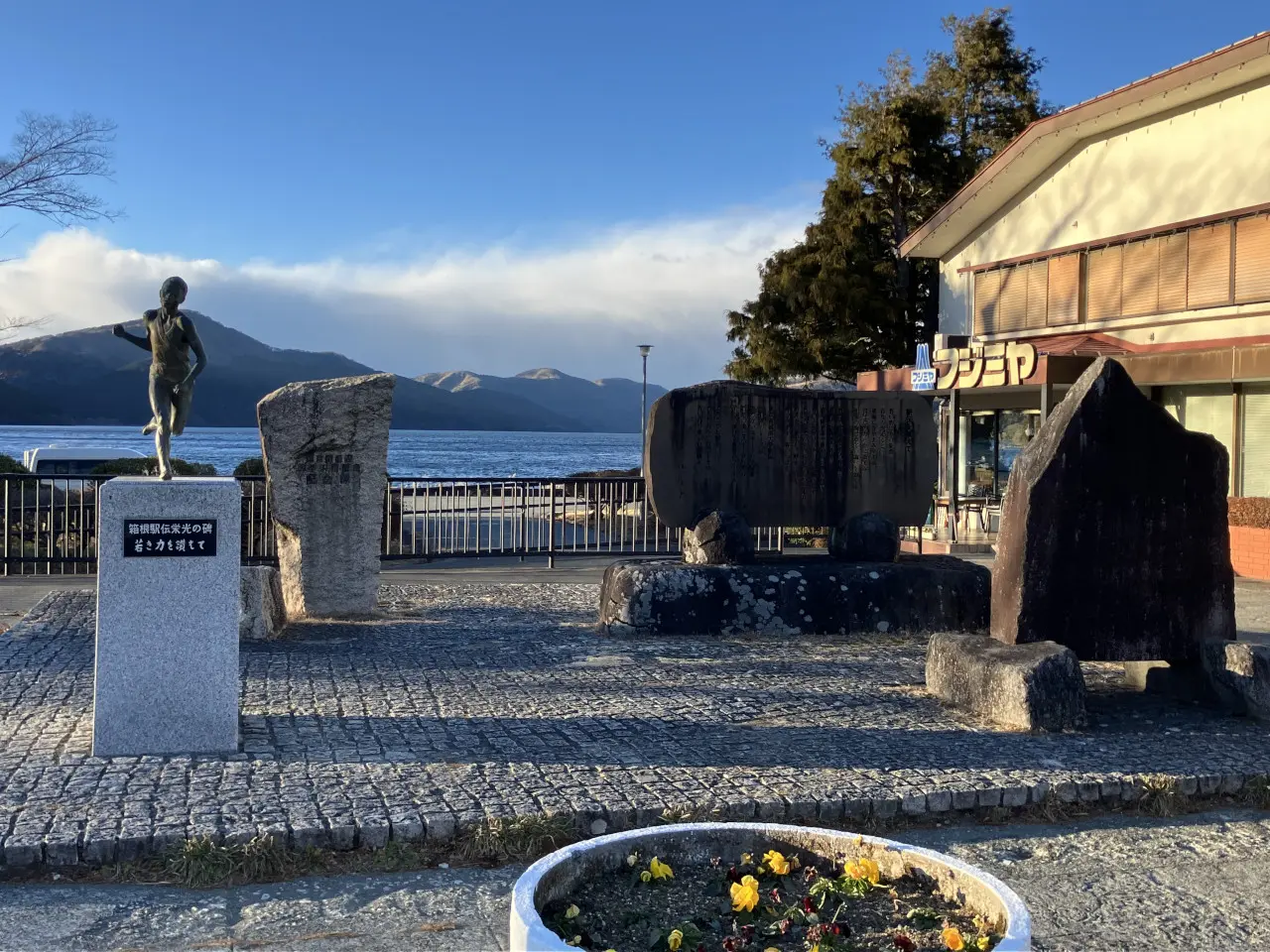 というわけで鶴見中継所に到着。往路の鶴見中継所にこんな銅像があるのは知らなかったです。(ちなみに反対側の復路中継所には無し)