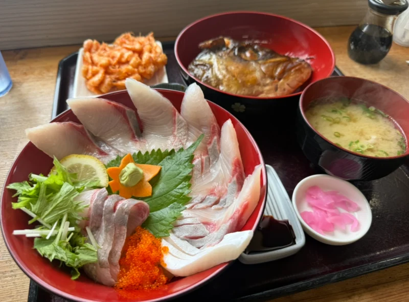 このエリアの名物、カンパチを使ったメニューが豊富です。