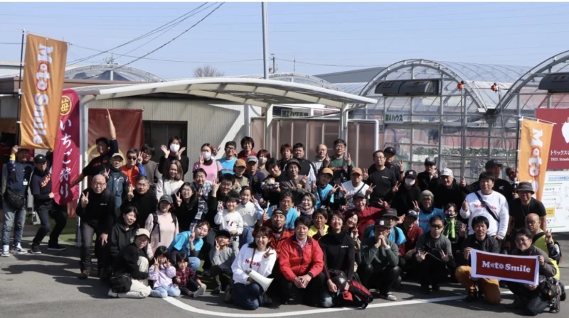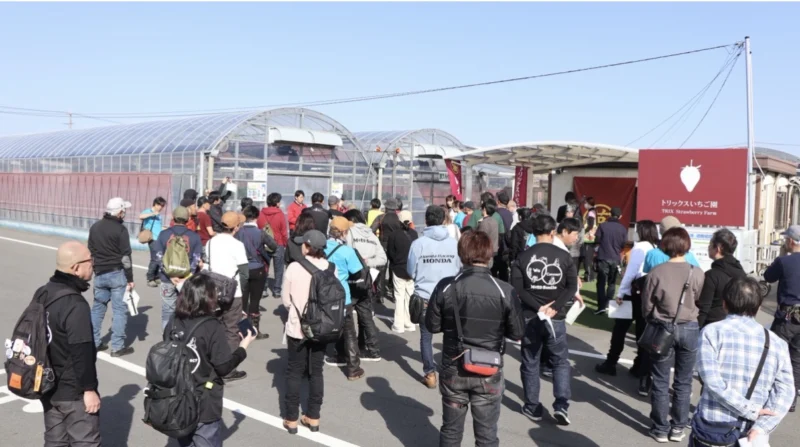 いちご園を運営するスタッフさんの中に、バイク好きレース好きの人がいることからライダーさんを歓迎したいと始まった企画です。