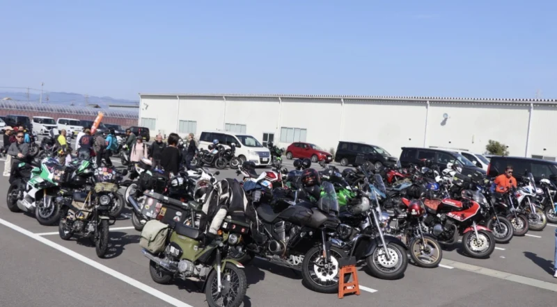食堂を開放してもらい、ヘルメットや荷物を置くことができたり、バイク専用の駐車スペースもイベント当日はありました。