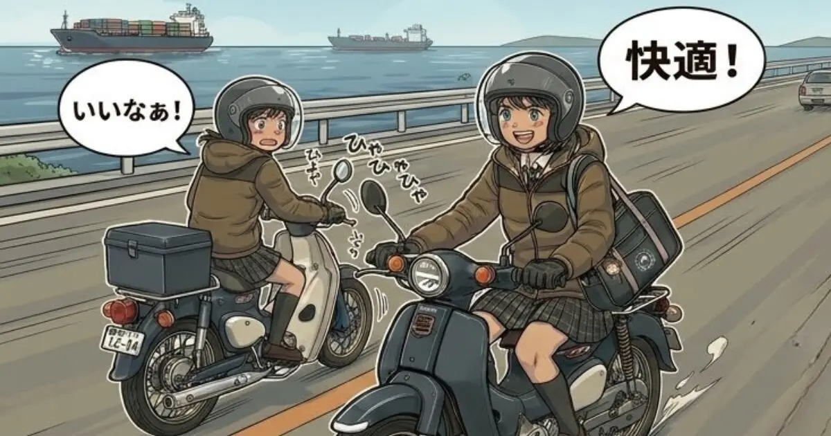 車格が大きくタイヤが太いため、横風やトラックのすれ違い時でもフラつきにくく、旧50ccのようなヒヤヒヤ感が激減します。
