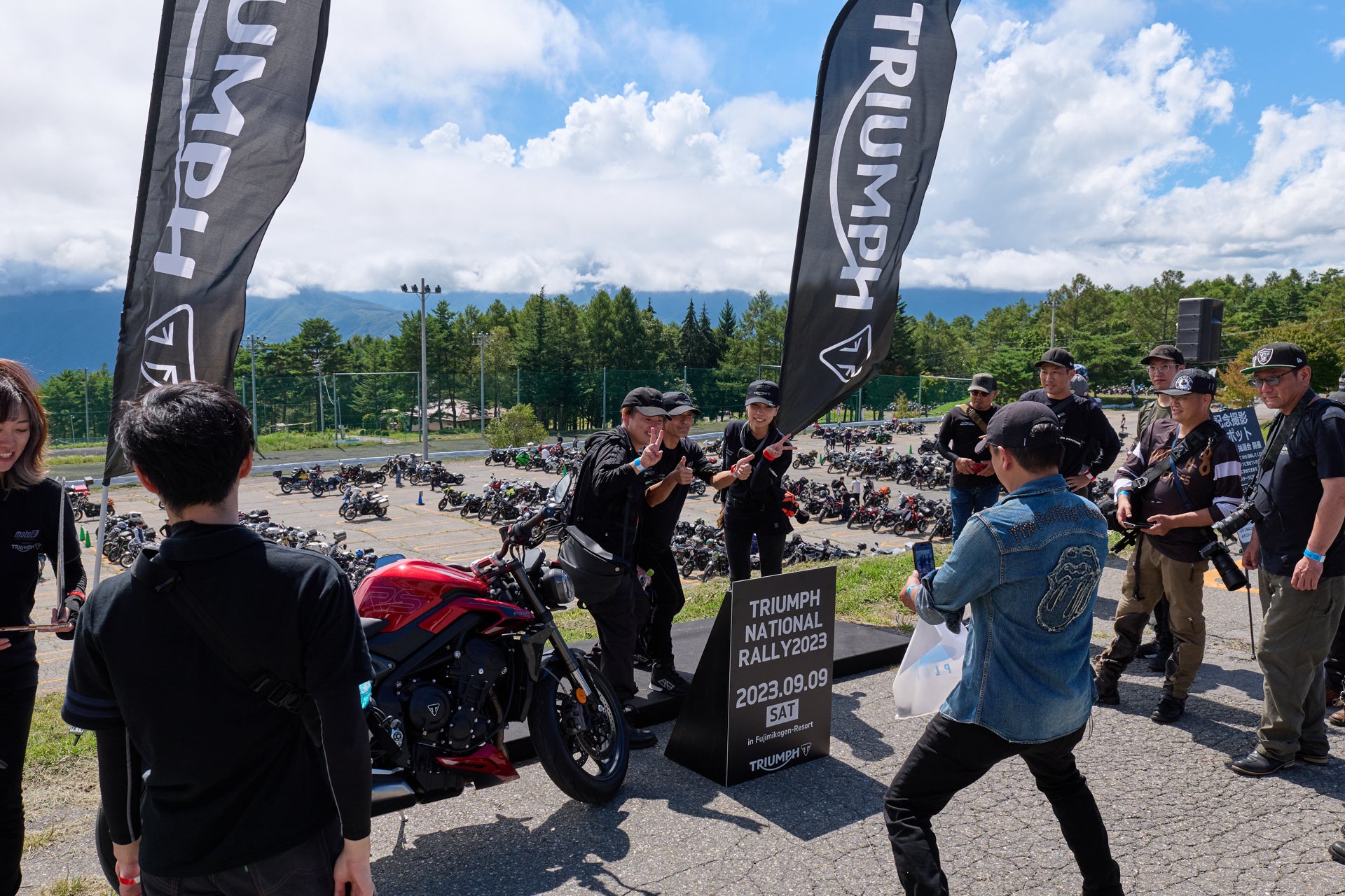 TNRでは皆様との「絆」を生むべく、来場者全員に「TNR2024オリジナルステッカー」や、イベント限定の「トライアンフオリジナルレジャーシート」の配布、参加者が集まっての集合写真。