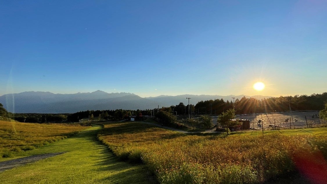 一度でもココにご来場された方はご存じだと思いますが、会場となる富士見高原スキー場は眼前に広がる美しい芝生と、甲斐駒ヶ岳などの南アルプスを望む雄大な景色が広がります。