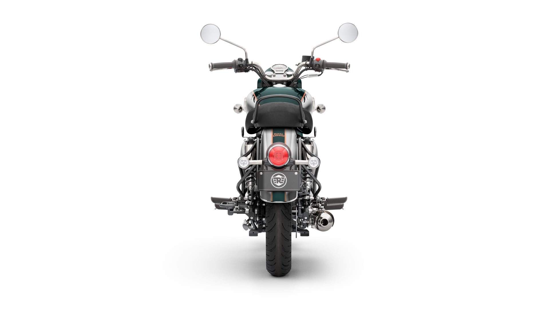 ロイヤルエンフィールド独自の機能であるヘッドライトナセルとキャスケットと呼ばれるヘッドライトのひさしを組み合わせたヘッドライトユニット周りのデザイン、リアのループ形状のフレームや前後サスペンションの取り付け角度など、シャシーの基本ディメンションを継承。前後フェンダーや燃料タンク、楕円形のツールボックスやスピードメーター、サドルシートやテールライト、排気管などは全て当時のスタイリングに合わせてデザインしました。しかし直径300mmのフロントブレーキディスクやガス封入式ショックアブソーバー、前後18インチホイールなど現在の道路事情に合わせたアイテムを新たに採用。乗り心地と走行安全性を向上させました。