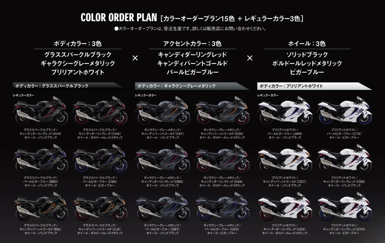 ■Hayabusa (ハヤブサ) カラーオーダープラン (GSX1300RRQKM6) 車体色:15 色
