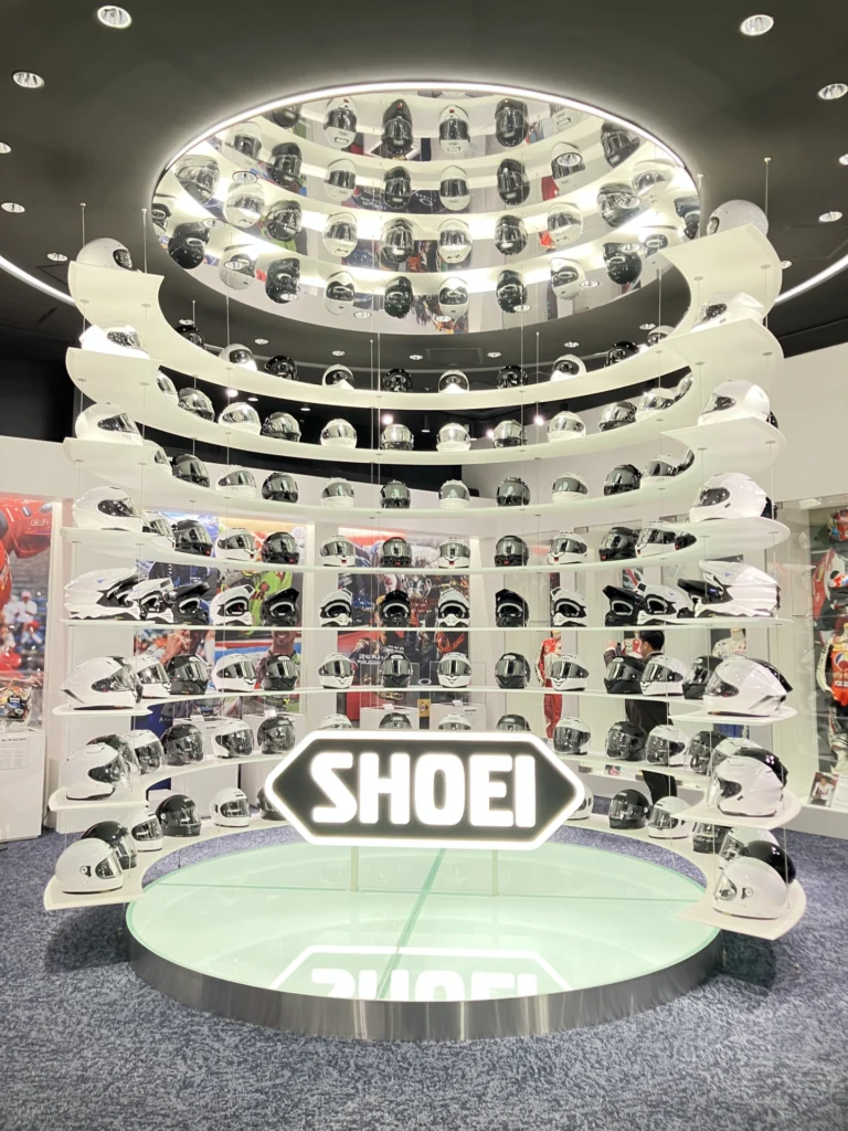 SHOEIの販売子会社である株式会社SHOEI SALES JAPANが運営するオフィシャルショールーム「SHOEI Gallery」は国内外で9店舗を展開。国内では7店舗目となるSHOEI Galleryが、SHOEI Gallery HELMET PARKです。