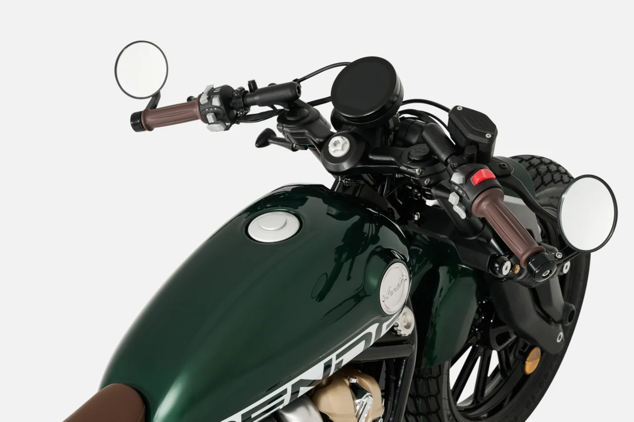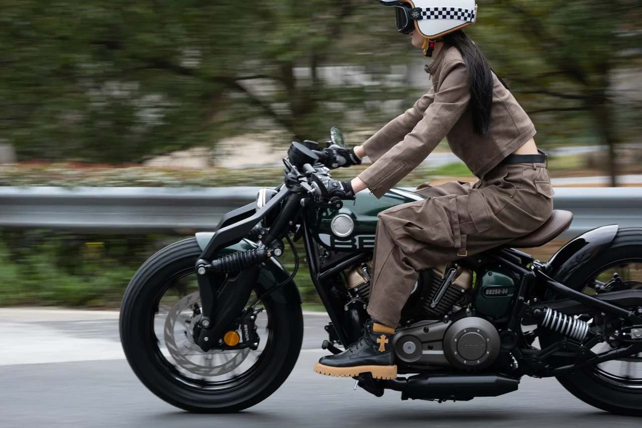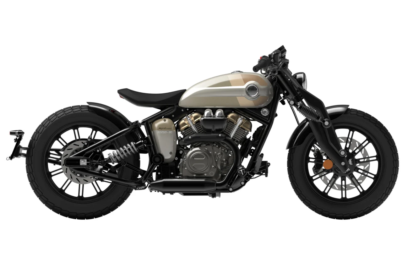 日本市場には特徴的なデザインの 250cc クラス「Naporeonbob250(ナポレオンボブ 250)」から取り扱いを開始いたします。このモデルはネオクラシックのクルーザータイプで圧倒的な存在感、唯一無二のモーターサイクルとなっています。