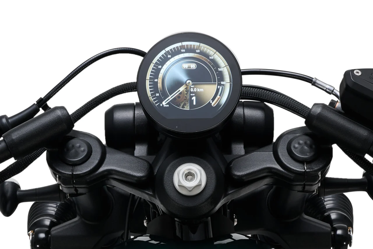 LCDスピードメーターはアナログライクな表示。歯車の回るアニメーションとともに、小さなタコメータのボールがディスプレイ上を走ります。