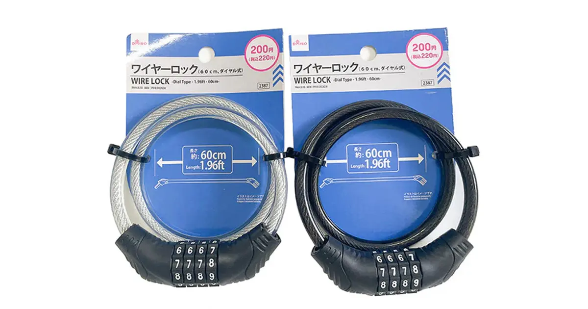 ダイヤル式のワイヤーロック。最初は0000になっています。価格は200円。