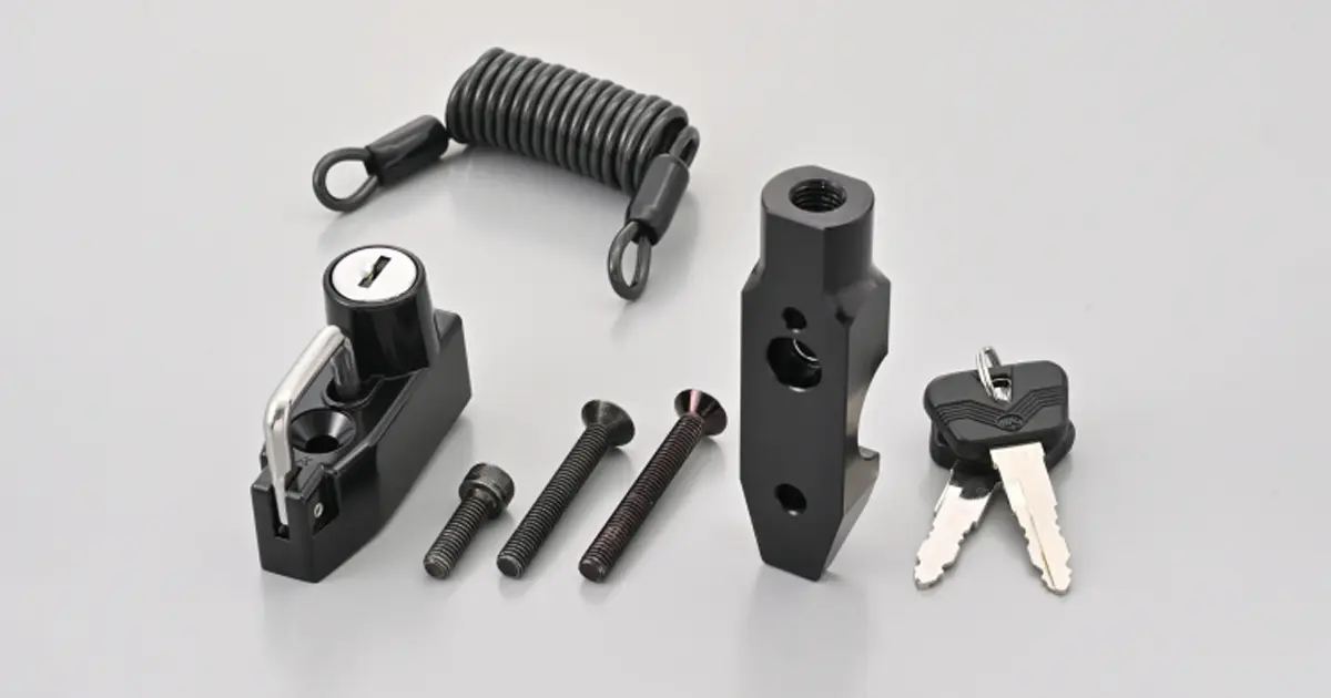 キジマのヘルメットロックは、インチハンドルを採用した国内メーカー車両に、レバーブラケットクランプ部を利用して装着出来るヘルメットロックです。ツーリング先での観光など、ヘルメットを置いて身軽に休憩したい時におすすめ。