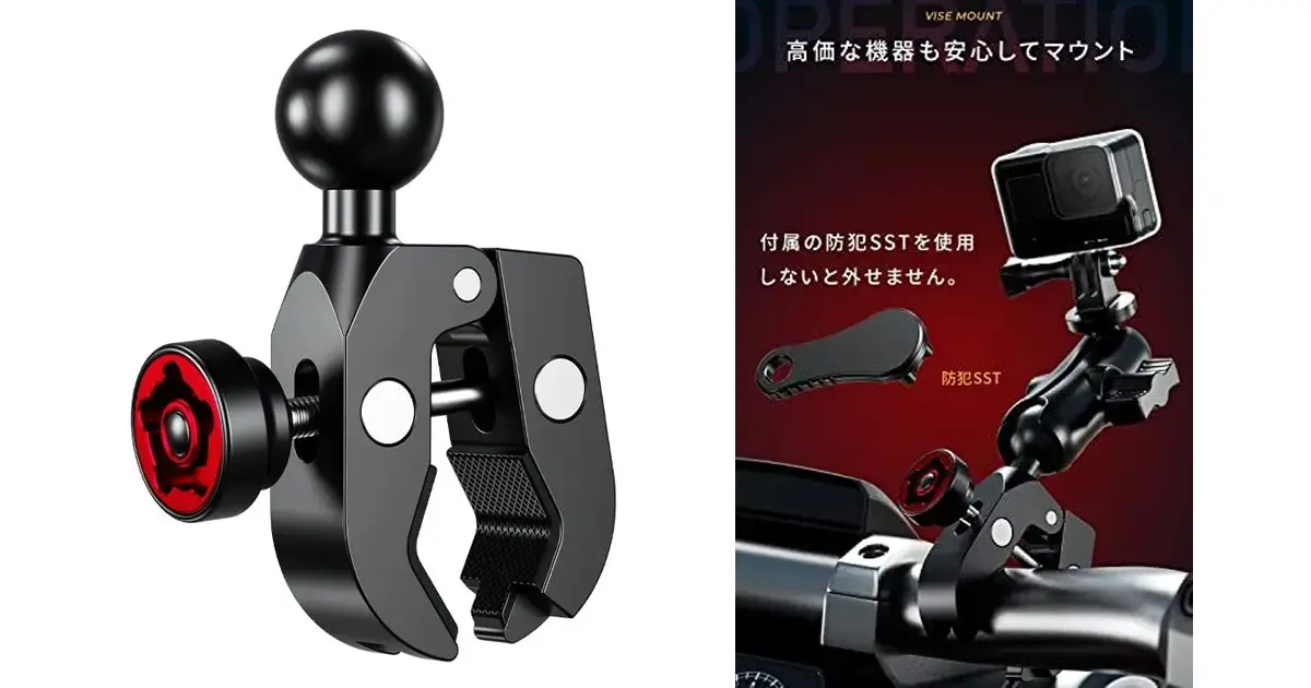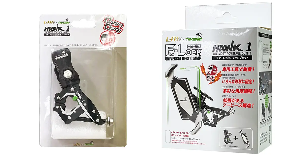 コルハートのF-LOCK HAWK1(エフロック ホークワン)は、スマートフォンとアクションカメラのベースクランプ。TKアドバンスPH05Bボールマウントホルダーなどとセットで使用します。専用工具で脱着するため、盗難防止と抑止の効果が期待できます。