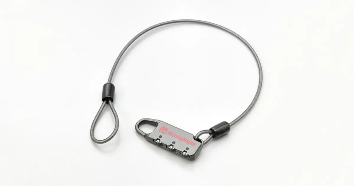 ワイヤー先端のループにロック本体を通してバッグやヘルメットを固定できます。ダイヤルは「0~9」の数字3桁で設定します。