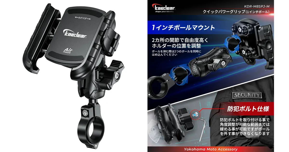 【カエディア:Kaedear】Kaedear(カエディア) バイク スマホホルダー バイスマウント 12.7mm~50.8mm KDR-R23S(1インチボール防犯)
