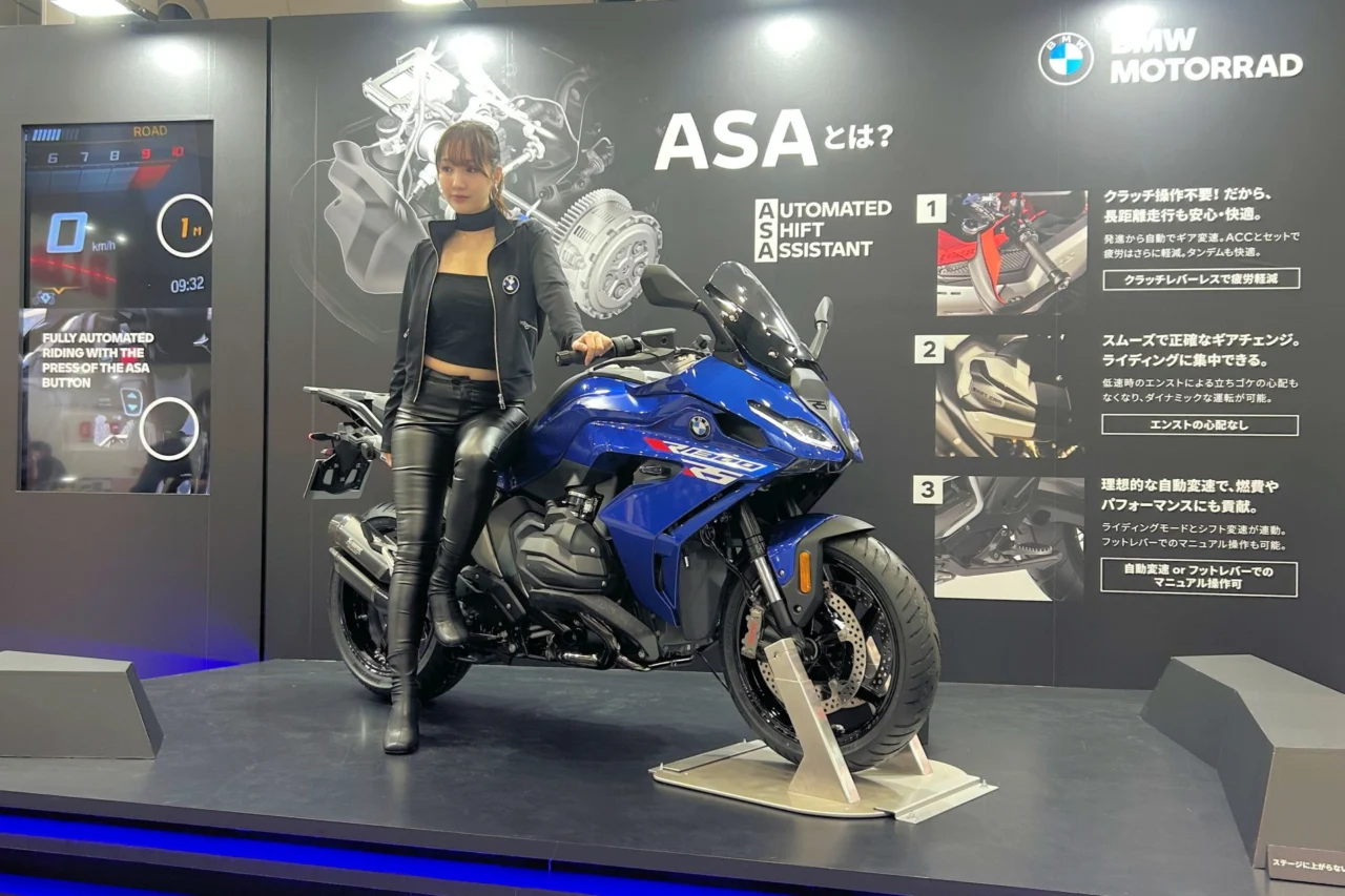 ステージ上に展示されていたR1300RSも、先代モデルからさらにブラッシュアップされた雰囲気で、未来感が出ていますよね!近年はやりつつあるクラッチレス!昔からのライダーにはちょっと寂しい気もしますが、より安全に、より快適に!を求めて行くと、こういった方向性になっていくのかもしれませんね。