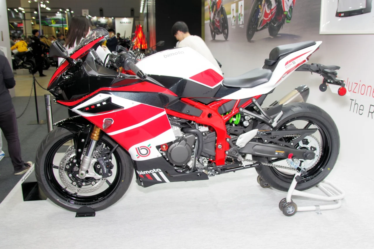 さらに目を引いたのが、異色の存在!Ninjaの心臓(エンジン)が内蔵されたBimota車両です!