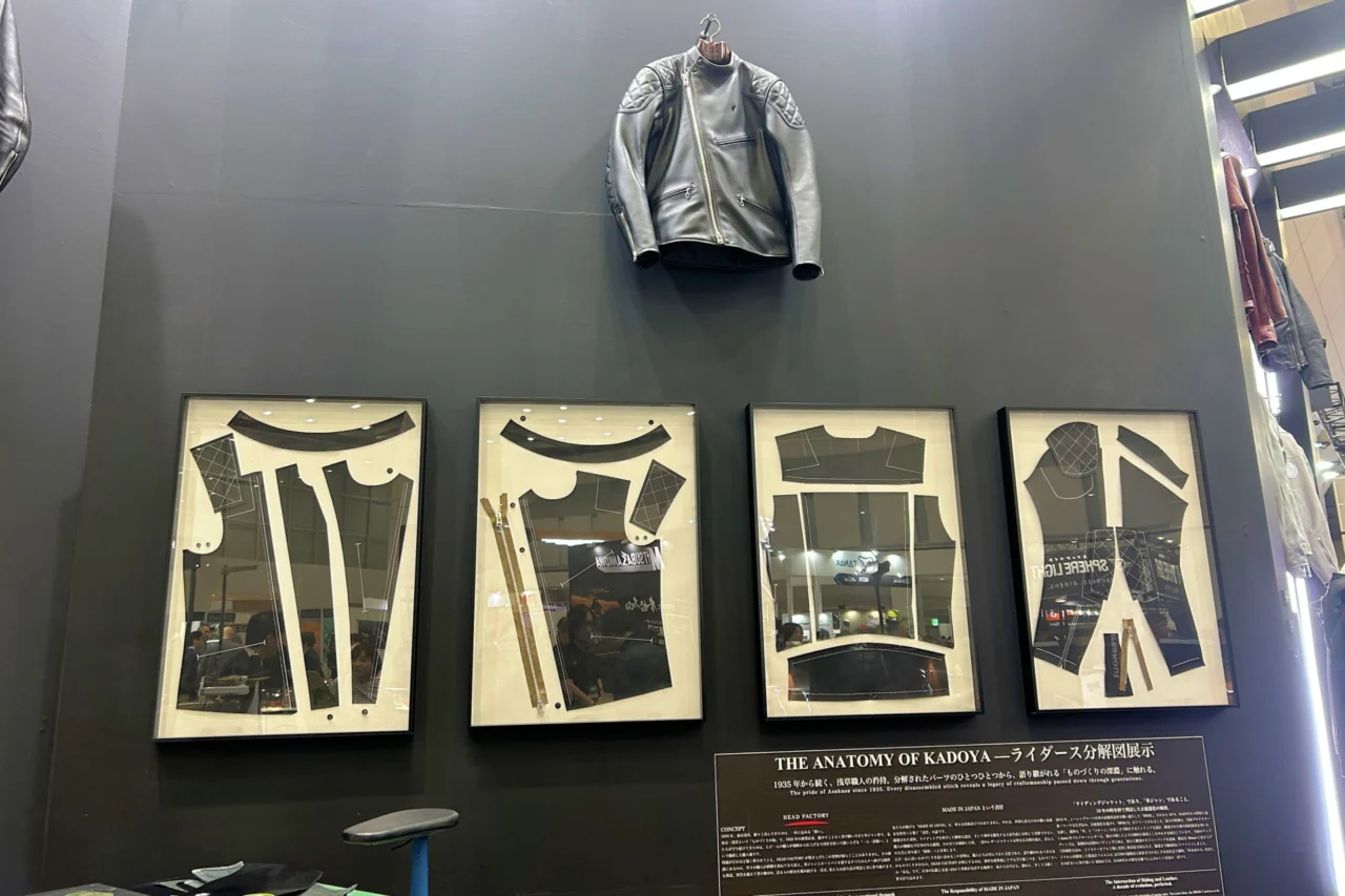 会場を歩き周る中でふと立ち止まったKADOYAさんのブースで見かけた“ライダース分解図展示”かなり斬新でした!