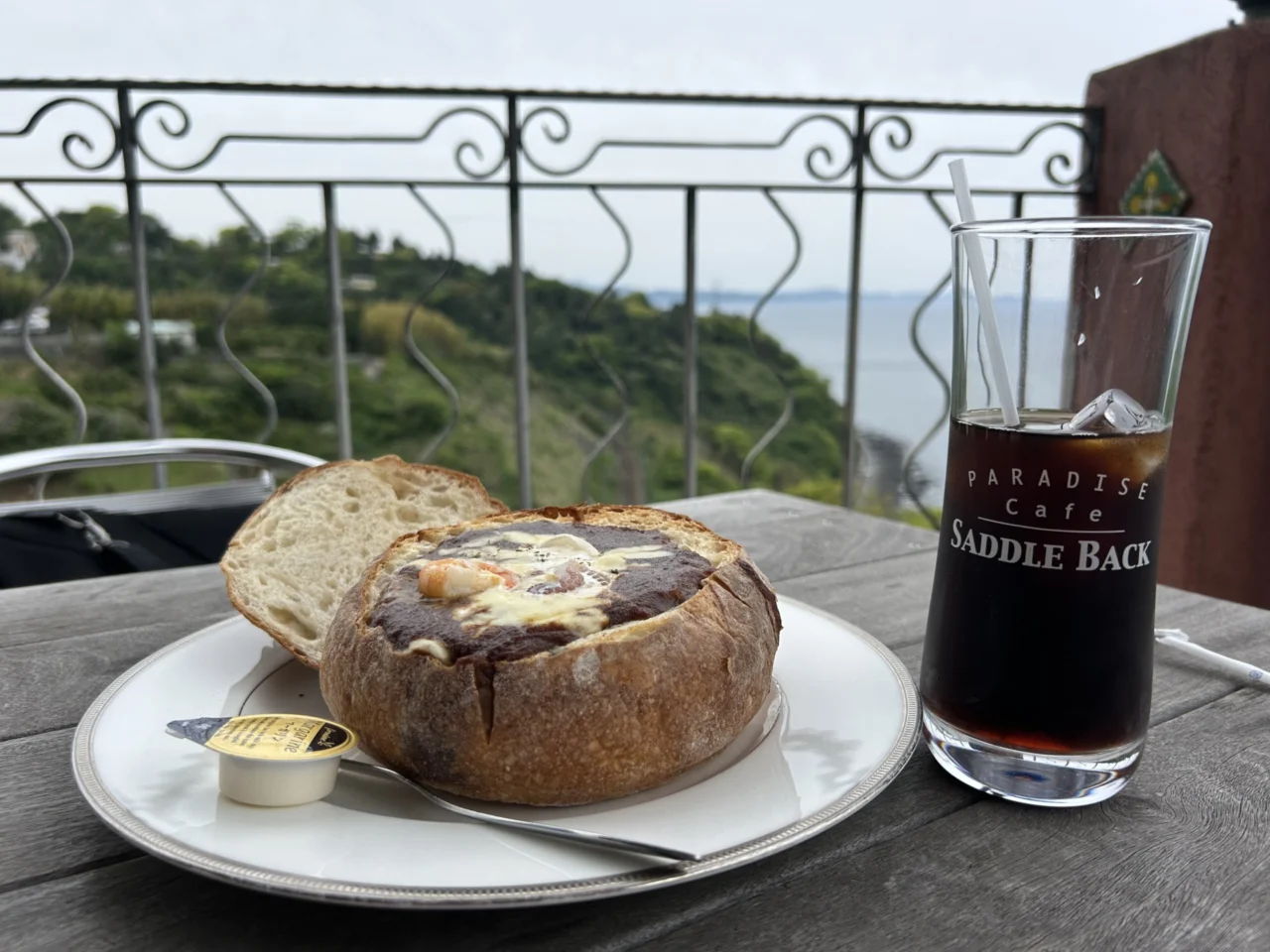 三浦半島も冬ツーリングの定番ではありますが、今回お勧めするのは、もう少し西側の小田原!真鶴半島の手前に位置する高台にある“サドルバックカフェ”さんのビーフシチューです。もう、ビーフシチューというワードだけで温まりそうじゃないですか?実際、すごく温まるし、見た目よりもボリュームもあるので、男性でも満足できると思います。